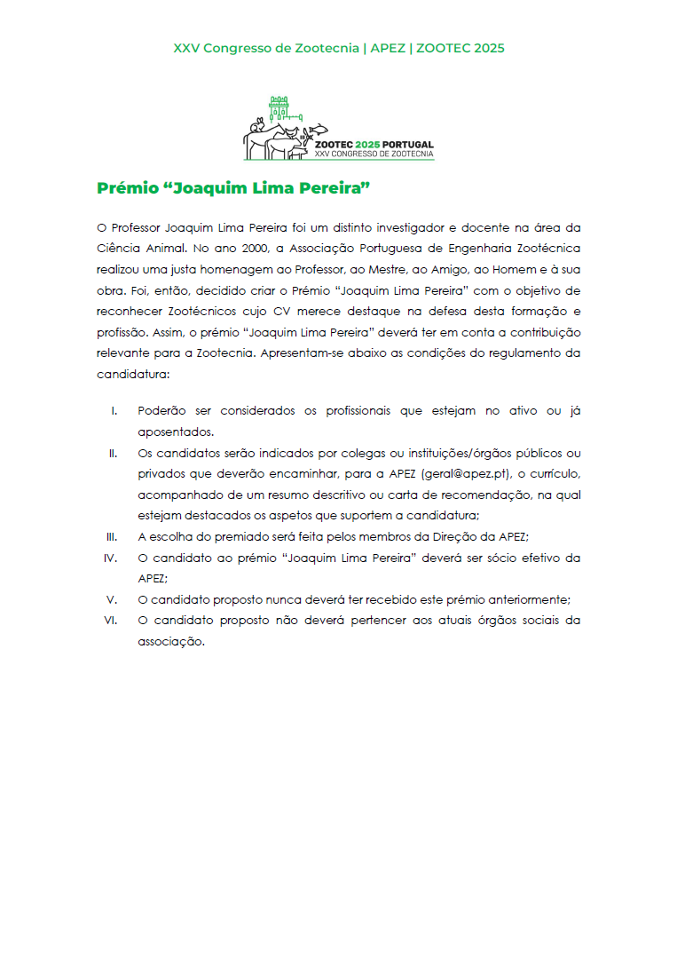 Prémio "Zootécnico do Ano" | Prémio "Joaquim Lima Pereira" |